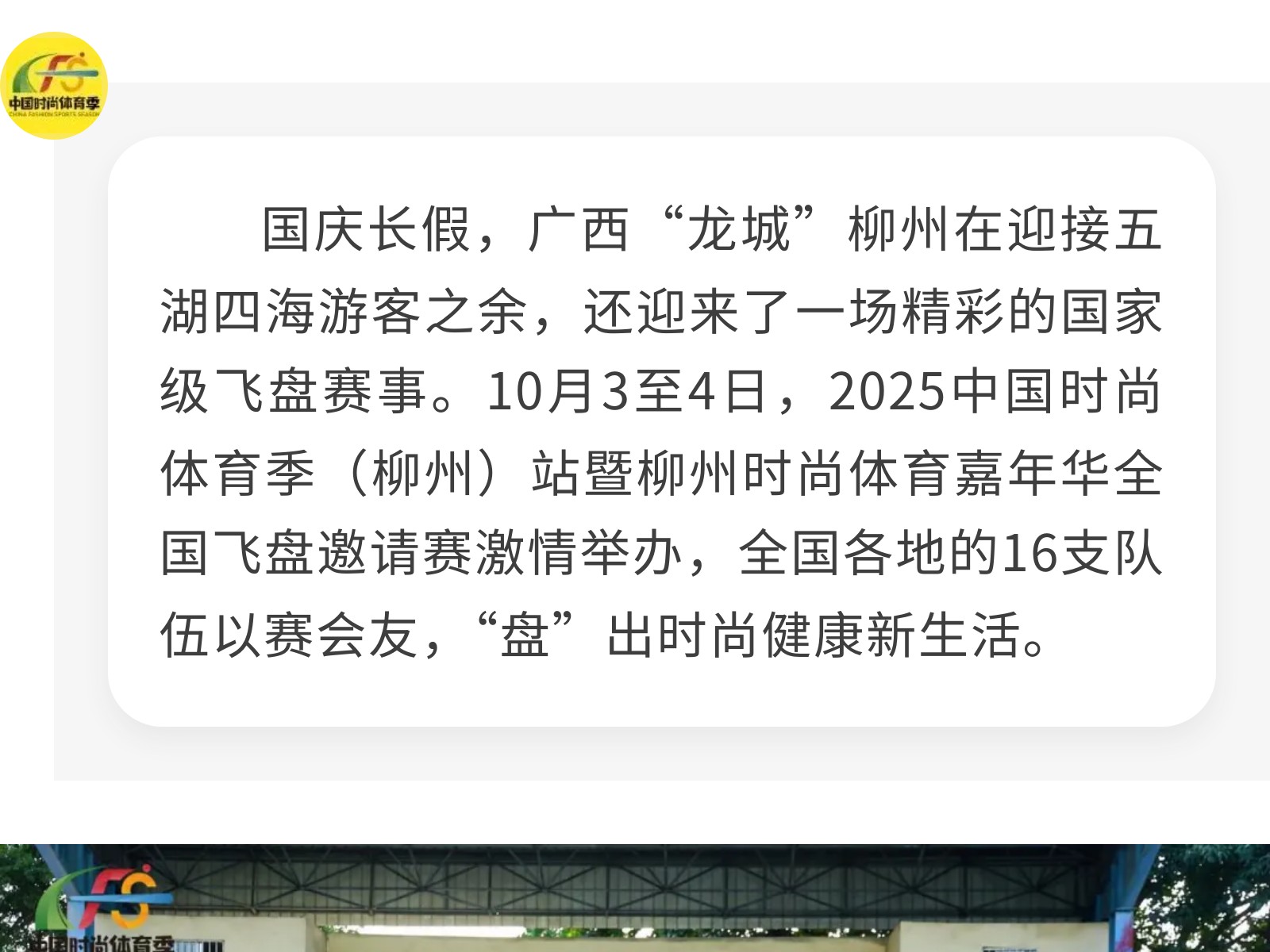 “盤”出時尚健康新生活,廣西柳州承辦國家級飛盤賽 發(fā)布時間:2025年10月05日 17時來源:本站原創(chuàng)瀏覽:36 人次